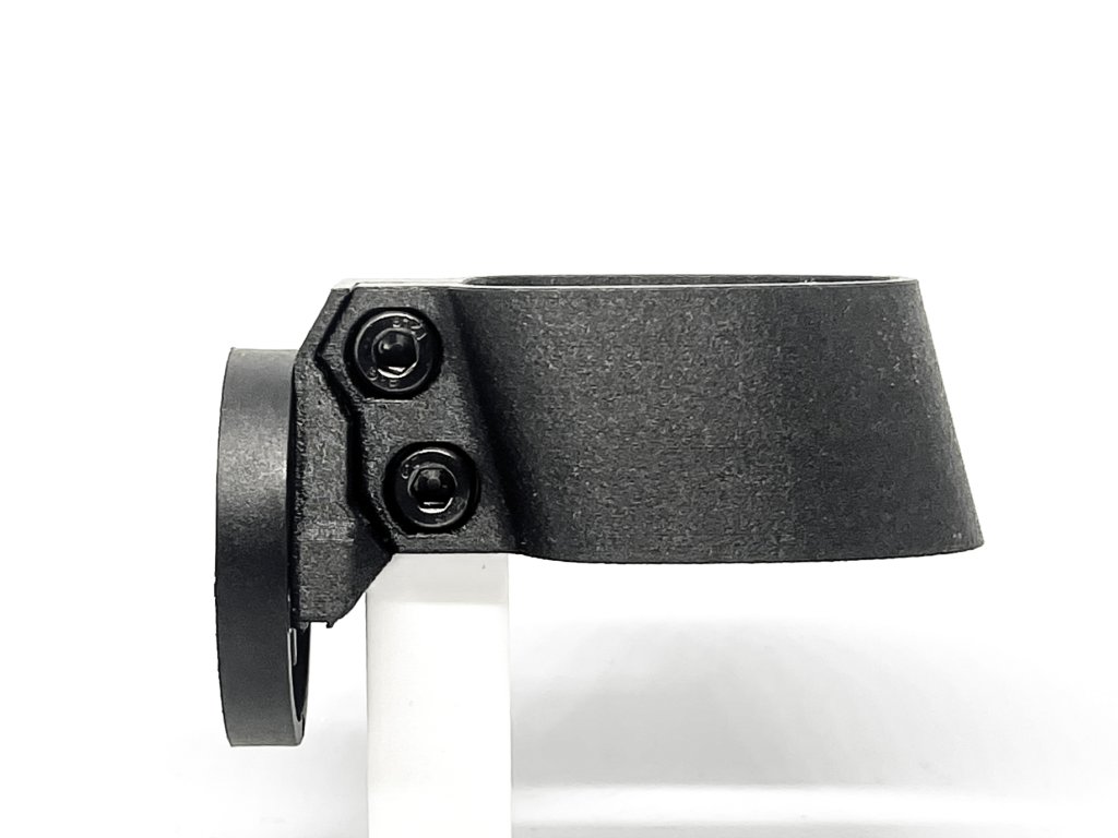 Držák je zhotoven pomocí 3D tisku z materiálu PA-CF (nylon s příměsí karbonových vláken), který je extrémně pevný, odolný a UV stabilní, takže vydrží i to nejdrsnější zacházení. Samotný "Garmin kroužek" je vyroben standardním výrobním postupem vstřikování.